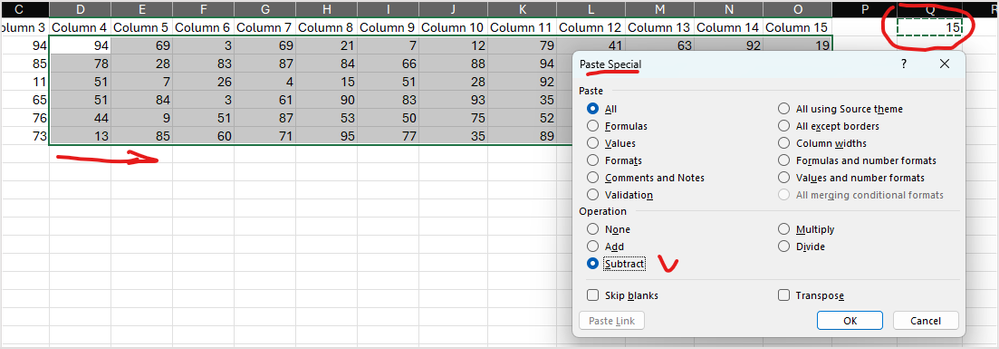 - Paste->Paste Special->Subtract->Ok