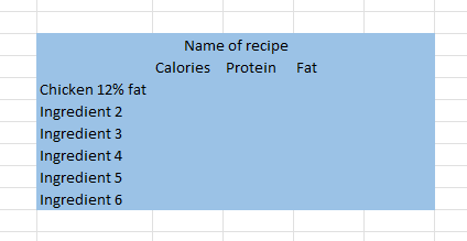 Hi Im making an eatingplan in excel. the first section is Macros for different food types. The other sections are recipes (breakfast, lunch, diner). The problem is, that once i have inserted the typ...