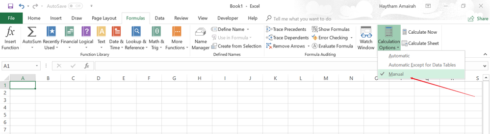 Yes, both 2013 and 2016 are in manual mode. If it is left in automatic it takes forever to load. I just can't see the calculations in 2016 in the spreadsheet.
