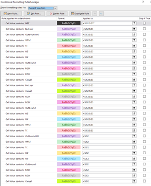Hi, Can anyone tell me if there is any limitation for the excel conditional formatting? we have this spreadsheet of schedule who has a lot of color condition as below. when ever you do a copy past...