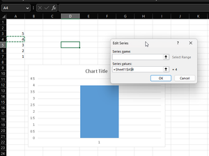 In the Refers to box, enter the formula =INDIRECT("Sheet1!A4")