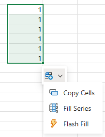 The “Autofill Options” button (the small box that appears right after you drag, offering choices like Copy Cells, Fill Series, Fill Formatting Only, etc.) does NOT appear in Excel Online.