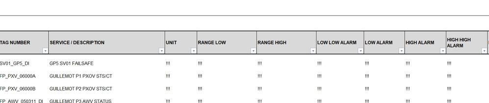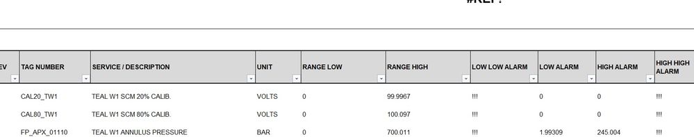 If Low Low Alarm, Low Alarm, High Alarm, and High High Alarm is not a number, then hide the row
