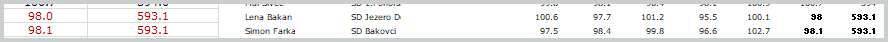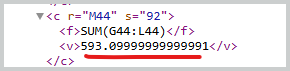 Odd indeed, but it's due to some minute rounding difference. The first 593.1 is considered greater than the second one. Normally you would see that in the 15th decimal but in your file that's not the case either. Both numbers are equal to the eye, though internally they are not. Google for "floating-point arithmetic" to read more about it.