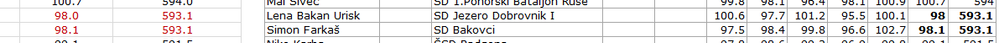 Odd indeed, but it's due to some minute rounding difference. The first 593.1 is considered greater than the second one. Normally you would see that in the 15th decimal but in your file that's not the case either. Both numbers are equal to the eye, though internally they are not. Google for "floating-point arithmetic" to read more about it.