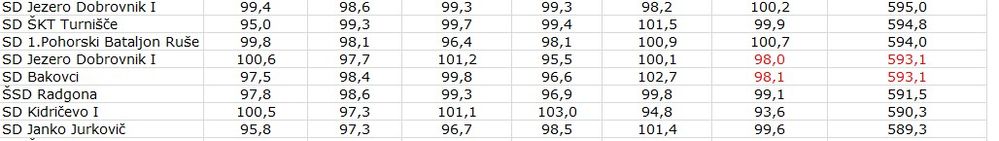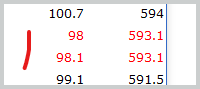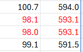 Odd indeed, but it's due to some minute rounding difference. The first 593.1 is considered greater than the second one. Normally you would see that in the 15th decimal but in your file that's not the case either. Both numbers are equal to the eye, though internally they are not. Google for "floating-point arithmetic" to read more about it.