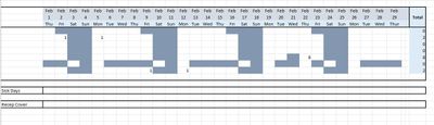 I have a spreadsheet as below (i've blanked out the names in column A relating to staff)