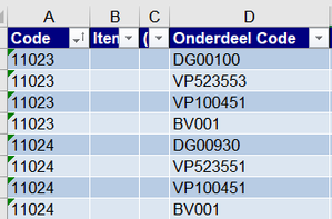 let Source = Table.NestedJoin( Table1, {"Onderdeel Code"}, Table2, {"Deeg"}, "Table2", JoinKind.LeftOuter), ExpandTable2 = Table.ExpandTableColumn( Source, "Table2", {"Code"}, {"Code.1"}), AddComponent = Table.AddColumn( ExpandTable2, "Component", each if [Code.1] = null then [Onderdeel Code] else [Code.1] ), SelectColumns = Table.SelectColumns( AddComponent, {"Code", "Component"}) in SelectColumnsPlease check attached.