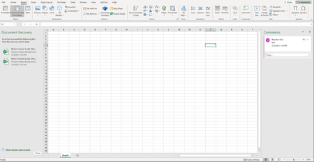 In a blank fresh workbook I insert a comment. With the comments section open on the right side as pictured if I go to a different sheet in the workbook and add a new comment the workbook crashes.. ...