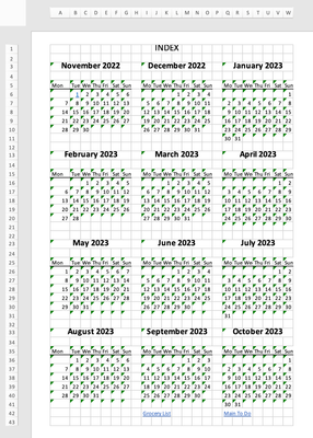Hi, I am creating a day planner. I'll include screen shots. I have two sheets. Sheet one is the first three pages of the planner (index/year of dates page, grocery list and main to do list). I ...