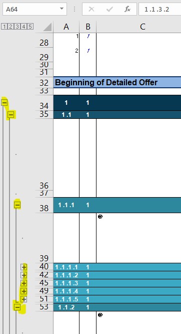 I am trying to figure out how to add these expandable row headings (Yellow Highlights) to my Excel spreadsheets but I cant figure out what they are called so I cant google. Can anyone assist?