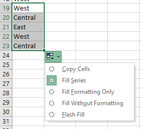 Hello! Whenever I open a workbook and input a certain word, 'West' for example, and drag down to copy the cell contents, Excel does not just copy that word. It creates a string of different input...