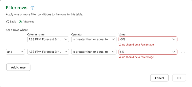 I'm trying to add a conditional column in power query on a value that that is a percentage, but I cannot figure out what value it will accept as a valid percent?