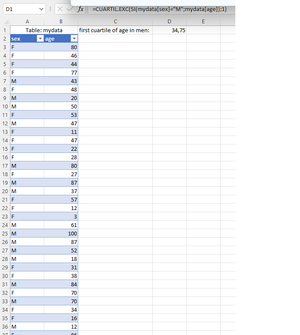 excel for statistics. ¿how to compute some descriptive statistics with case selection?