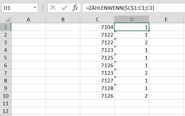 Is there a Countif formula or a vba script that I could use to populate Column D based on Column C?