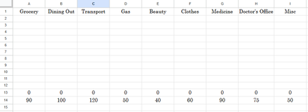 Hi, I'm looking to write a formula that can help my class with some basic budgeting skills. They basic layout is each column is it's own category with an allotted amount for each: ex column A...