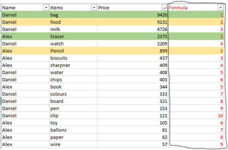 Excel Formula to Rank between Name and Subject with respect to mark as per below example.
