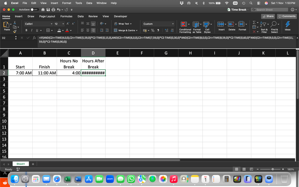 Each time slot has an amount of time taken off so if the employee starts at 7am and finishes at 11am they would be in the system for 4 hours.