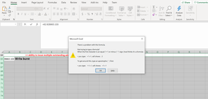 Dear all, I have and error in formula and the error box appear as below. However I can't edit my formula to fix the issue. I also can't save or close or undo my excel. Anyone pls help me wit...