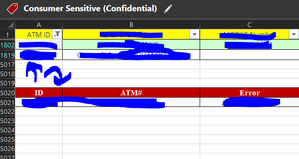 HansVogelaar Once I select ATM id from the filter I want the data from the red box above to be copied the same in the red box below in cells A5021& B5021.