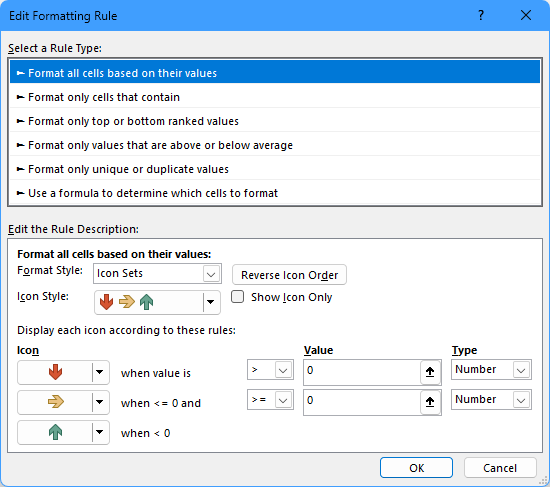 Use this to create a conditional formatting rule of type Icon Sets.