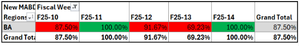 The average for F25-13 is 100% and that for F25-14 is 20%.