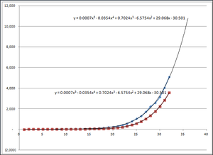 Good afternoon. I'm using excel 2007 to graph some data, put in a trendline, show the equation and then use that equation to generate projected results to compare against the original data. H...