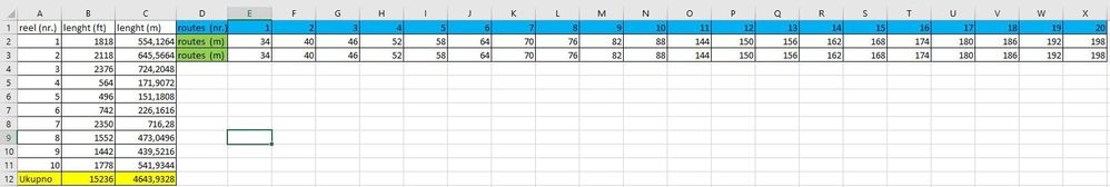 Now, my question is: - is there maybe some formula or tool, that can sort me lenght of the routes, with lenght of the reels ? Or even better, is there any tool that can sum the routes (1,2,3 or even more) and assign them to to the appropriate reel lenght ? I have to redistribute lenght of the routes on the lenght of the reels.