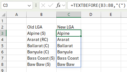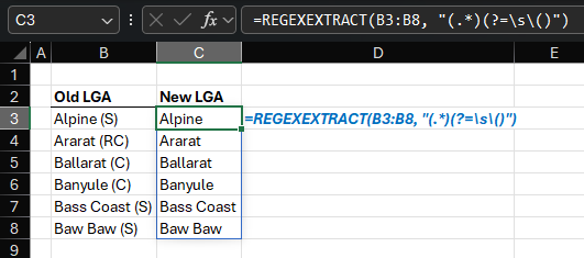 Currently after I extract the data, I use look up function to get the New LGA column to replace the existing data. This is a manual task. The original file I have download from MS SQL and the file format is csv.