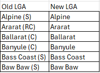 Hi all, I have list of LGA location names in excel file. An example are as follows: Currently after I extract the data, I use look up function to get the New LGA column to replace the ...