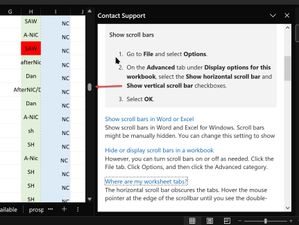 The horizontal scroll bar is missing on my spreadsheet.  The vertical scroll bar is working OK  The boxes for Horizontal and vertical scroll bars are both ticked.  The horizontal scroll bar disappear...