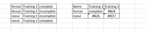 Hi There, Please advise i would like to get specific values for these but it returning error. Basically it should show there complete or incomplete. Thank you wizards! Fernan