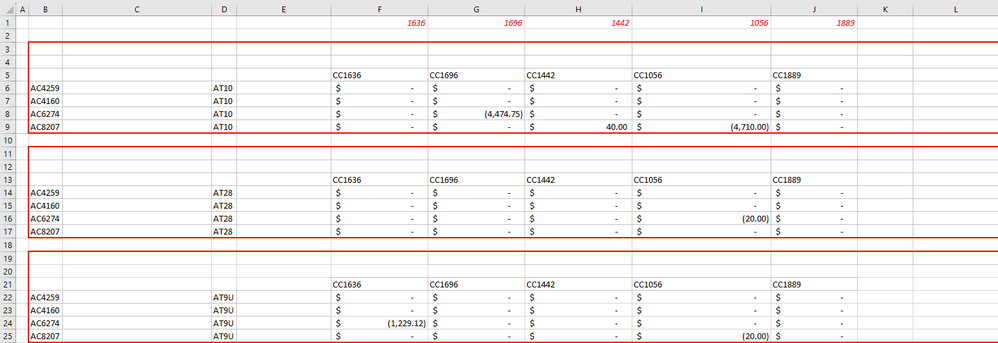 I'm submitting this request realizing I've hit the limit of my excel knowledge but would still really like to be able to consolidate this retrieve into a format I can copy/paste into a journal entry template. I'll try my best to step-by-step explain what I want to achieve.