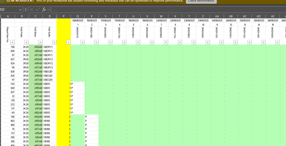 Column highlighted in yellow which is column "P" is manually enetered 1 and 2 and I want to get that written through a formula.