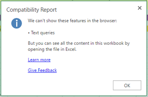 I have a problem with Excel in the browser when trying to edit a file on Sharepoint. The file has been edited by various people and so it has some legacy issues. One of those issues is "Text Querie...
