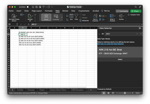 Excel Stock Data Selector search not showing results ARKB