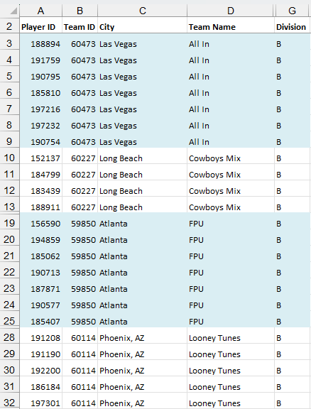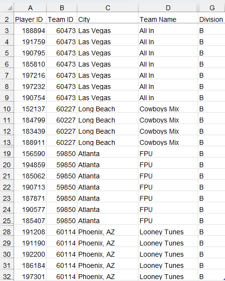 The data has a common Team ID number with different amount of players.