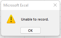 Excel "Unable to record" macro
