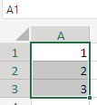 In our example, let's enter 1, 2, and 3 in the first column in rows 1, 2, and 3. It should look like below. There's a reason I didn't go to 5 yet! Figured I'd show you a trick! 😉