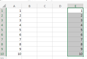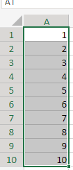 In the lower-right of the selection, notice that little box? It's called the quick fill handle. Excel uses the context of what is selected to guess what you might enter into other cells. Try dragging it down a few rows! I'll go to 10 in my example.