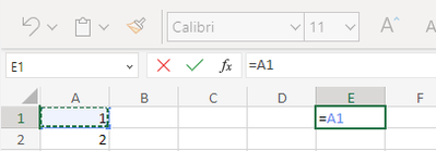Now to commit the formula to cell E1, which will simple display whatever is in A1 and update whenever it changes, press enter.