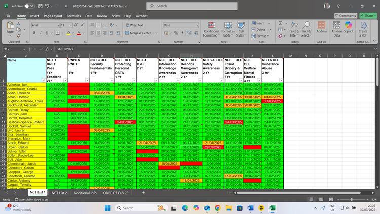 Hoping someone can help me simplify the process for one of my work spreadsheets. Attached is a spreadsheet where I follow the training profiles for a nuber of people in my team.