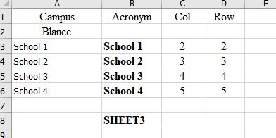 - mfgutierrez2003Copper ContributorThank you; I needed to add those areas to the formula on Sheet 1, but didn't know how to do that for school 4. The formula from sheet 1 only exports data from Sheet 2 for Campus 1, 2 and 3. I just couldn't figure out how to recalculate and update formula on Sheet one for all the cell.
