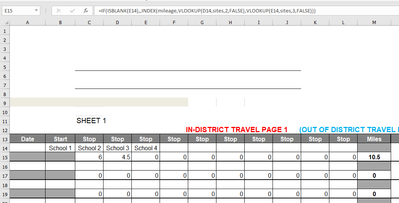 I need help with an existing formula on a spreadsheet. I added another site, school 4 (sheet 3), to an existing dropdown menu on sheet 1. When I then start using school 4 from the dropdown menu on sheet 1, the data from sheet 2 isn't automatically filling in; how do I get this to calculate it to 1.5