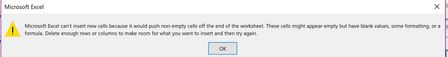 I've started receiving a new error message in Excel. I don't recall turning this sheet into a table. I am receiving the attached error, indicating I can't insert new columns because d...