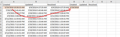the difference between Resolved and Created will be 0.042 and 1 day for above cases accordingly.