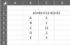 Here I got A5+B1+C11+D2+E5 I want to extract each number after text a b c. and separate it to each cell like C3 to C7 But I don't know which function to use