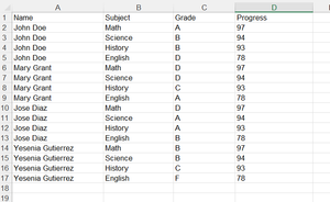 An alternative could be Power Query which is available in legacy Excel e.g. Excel 2013. In the attached file you can add data to the blue dynamic tables in sheets "rawdata" and "mystudents". Then you can click in any cell of the green table in sheet "mystudentsprogress" and right-click with the mouse and select refresh to update the green result table.