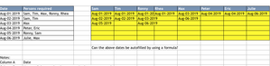 I have two columns (A and B). Column A contains the dates and Column B contains the names of people who are required to attend the duty. Now based on this can i have names of people and just below th...