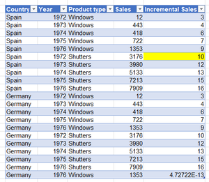 =SUMIFS(Table1[Incremental Sales],Table1[Country],G2,Table1[Product Type],G3,Table1[Year],G4)
